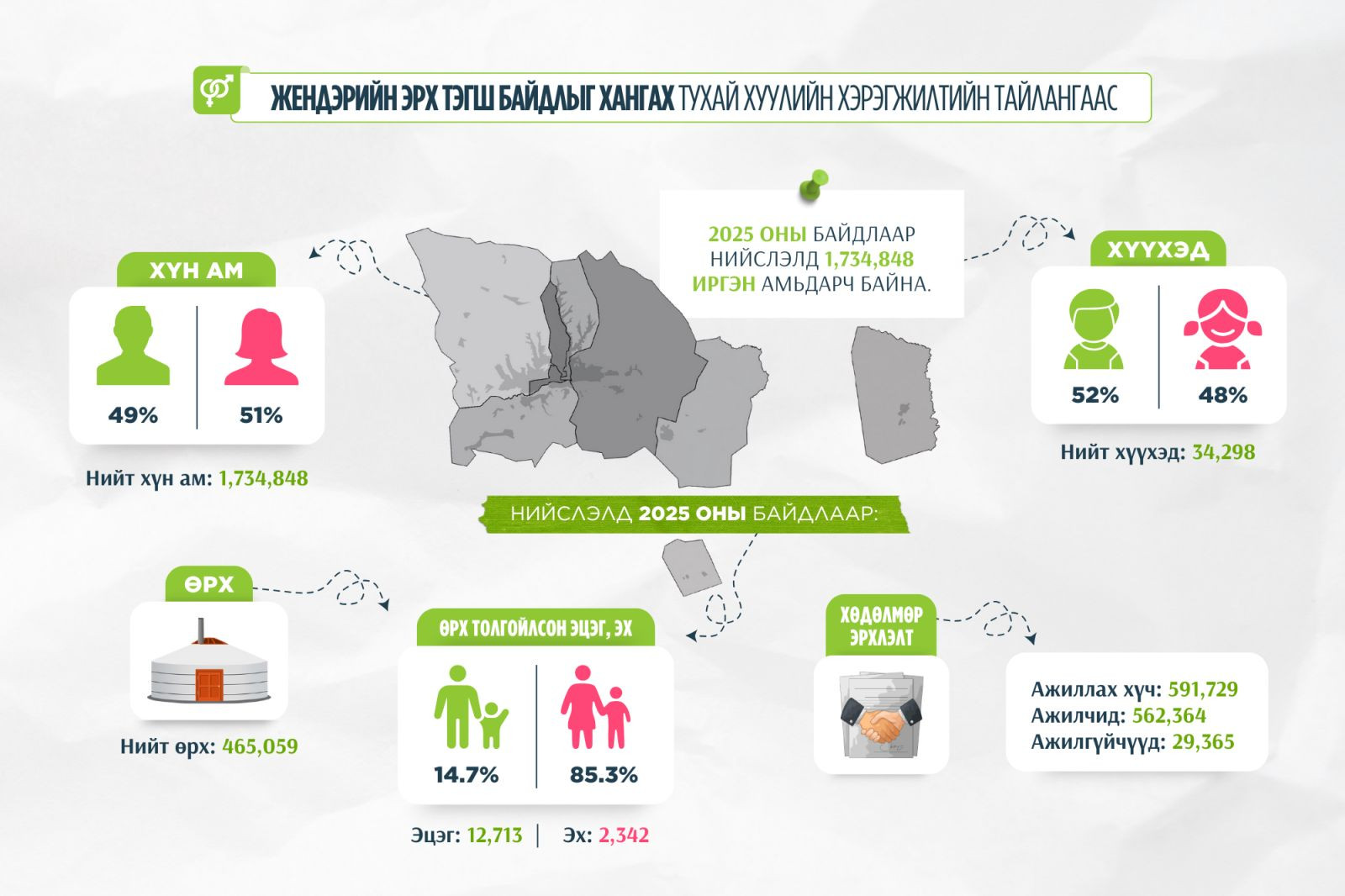 Нийслэлээс жендэрийн эрх тэгш байдлыг хангах бодлого, үйл ажиллагааг дэмжин ажилладаг. Энэ хүрээнд Жендерийн эрх тэгш байдлыг хангах тухай хуулийн хэрэгжилтийн тайланг гаргалаа. Тус тайланд тусгагдсан мэдээллээс хүргэе.