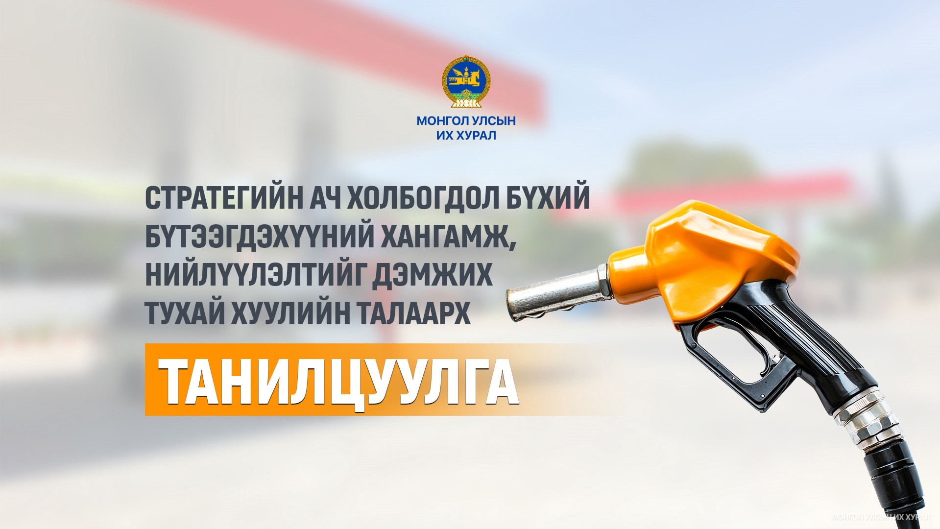 Монгол Улсын Их Хурлаас 2025 оны намрын ээлжит чуулганаар олон улсын худалдааны нөхцөл байдал, гадаад хүчин зүйлсийн нөлөөллөөс шалтгаалан дотоодын зах зээл дээр керосин, дайвар бүтээгдэхүүнээс бусад газрын тосны бүтээгдэхүүний хангамж, нийлүүлэлтийг дэмжих, учирч болзошгүй эрсдэлийг бууруулах, даван туулах арга хэмжээг тодорхойлох, холбогдох шийдвэрийг шуурхай гаргахтай холбогдсон харилцааг зохицуулах Стратегийн ач холбогдол бүхий бүтээгдэхүүний хангамж, нийлүүлэлтийг дэмжих тухай хуулийг баталсан.