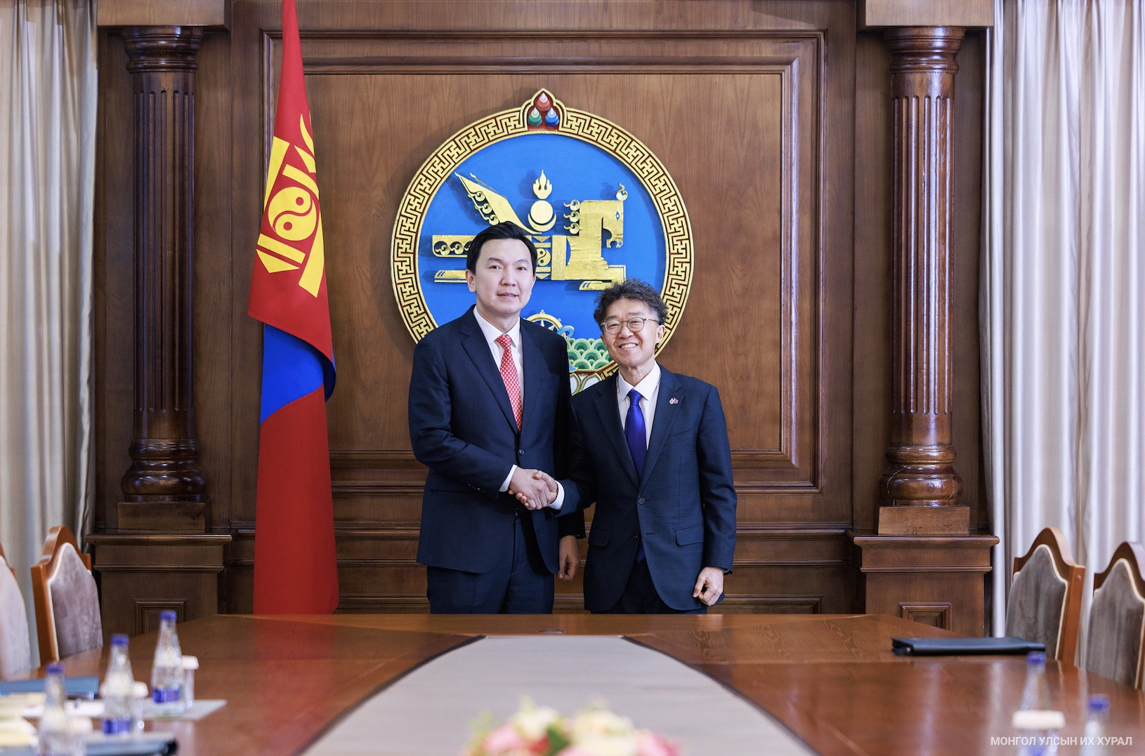 Монгол Улсын Их Хурлын дарга Н.Учрал өнөөдөр (2026.02.05) Бүгд Найрамдах Солонгос Улсаас Монгол Улсад суугаа Онц бөгөөд Бүрэн Эрхт Элчин сайд Чой Жин Воныг хүлээн авч уулзав.