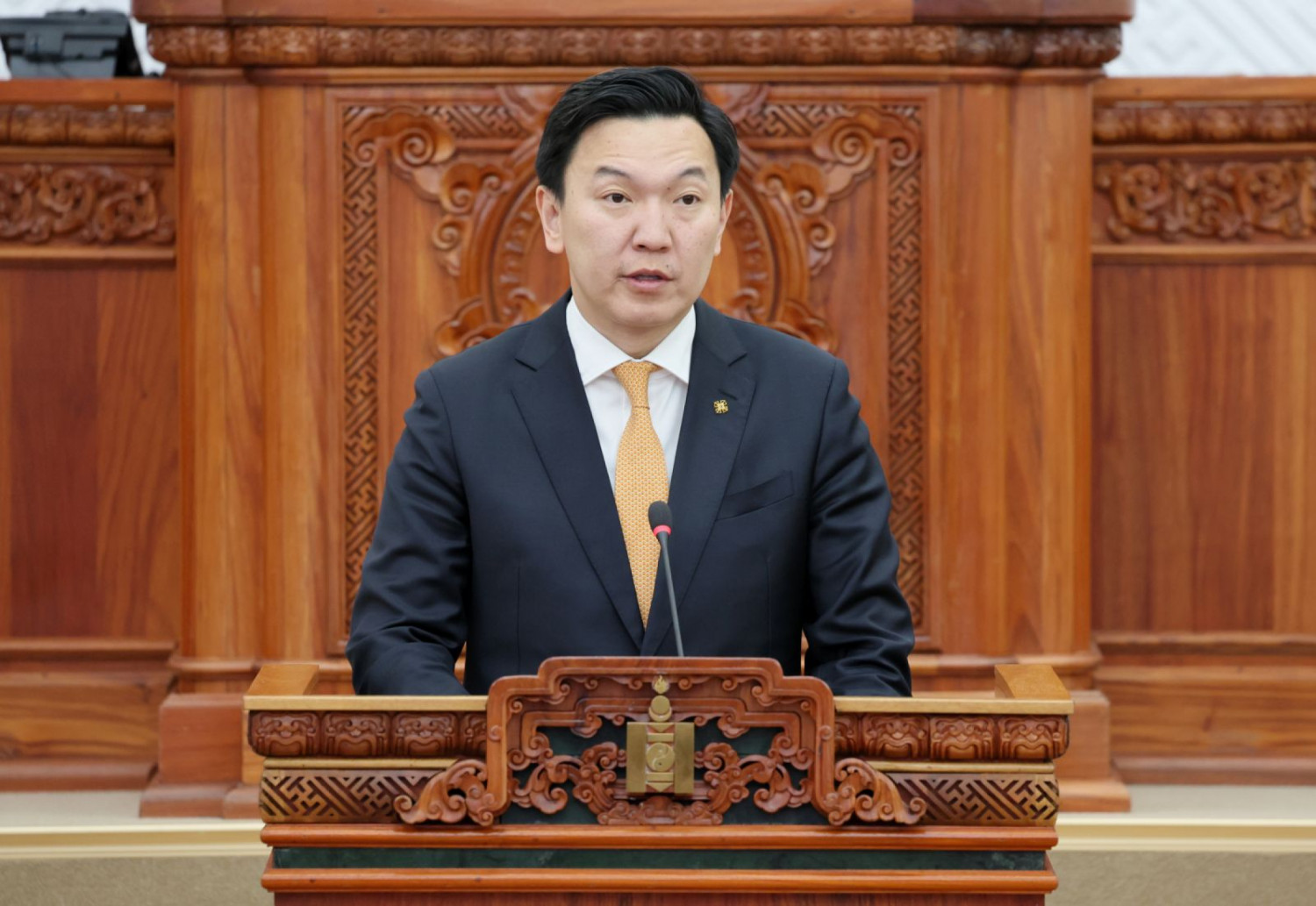 Монгол Улсын Ерөнхий сайд Ням-Осорын Учрал “Импортын барааны гаалийн албан татварын хувь хэмжээ батлах тухай” УИХ-ын 1999 оны 27-р тогтоолд өөрчлөлт оруулах тухай тогтоолын төслийг танилцуулж, УИХ-ын чуулганы нэгдсэн хуралдаанд үг хэллээ.